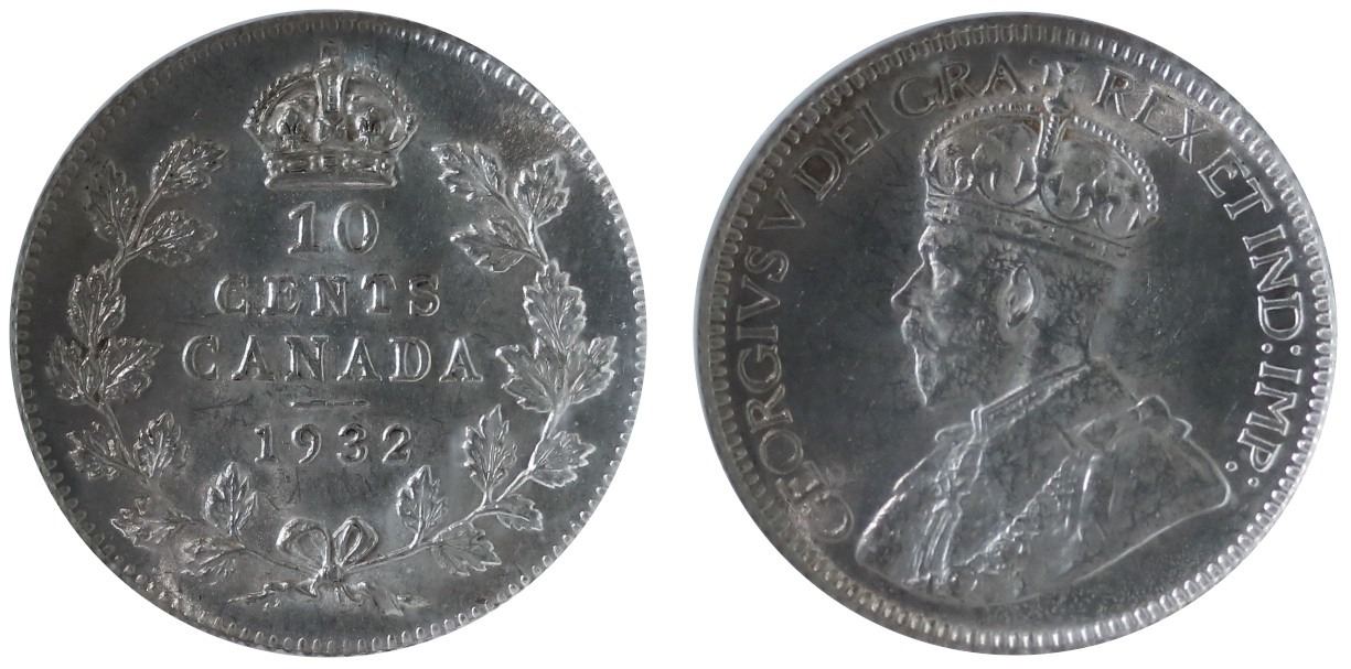 1932 10¢ NGC Choice Mint State-62. Strong lustre and no tones.