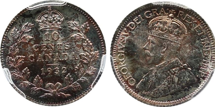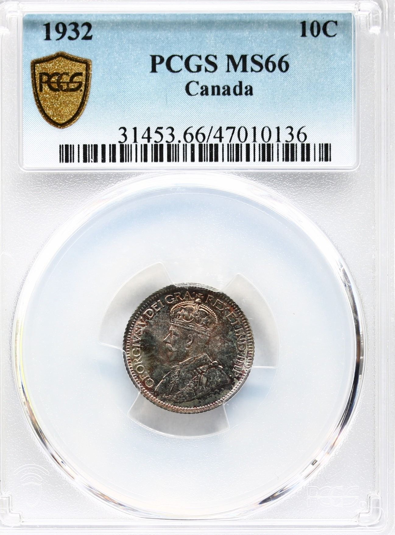 1932 10¢ PCGS Superb Gem Mint State-66, Superb autumn shades over full underlying lustre. A very nice and attractive example.