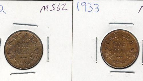 1932, 1933 both coins are MS62 or better with some red lustre.