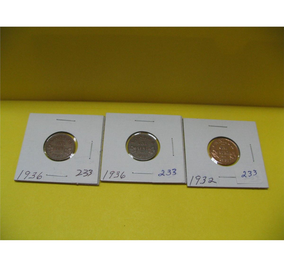 1932, 1936, 1936 Cdn. One Cent Pcs.