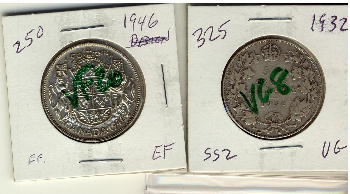 1932 & 1946 50¢. Lot of 2 coins, 1932 VG and 1946 VF20.