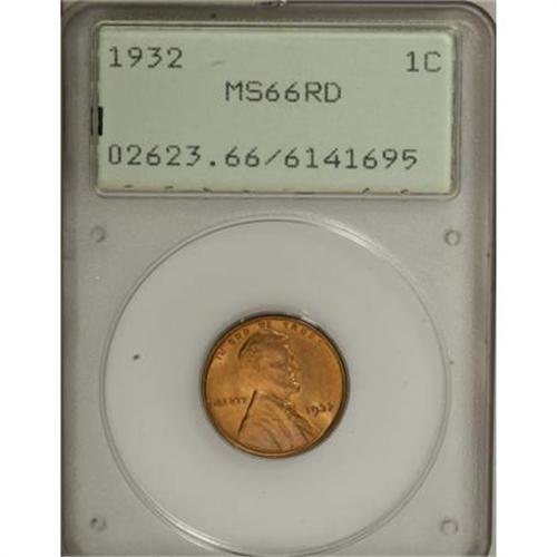 <B>1932 1C MS66 Red PCGS.</B></I> . PCGS Population (416/24). NGC Census: (161/14). Mintage: 9,062,000. Numismedia Wsl. Price for NGC/PCGS coin in MS66: $270. (#2623)<BR><BR><B>Coin Engraver:</B> Victor D. Brenner<BR><BR><b>Shipping:</b> Coins & Currency (<a target="_blank" href="http://www.heritageauctions.com/common/shipping.php">view shipping information</a>)