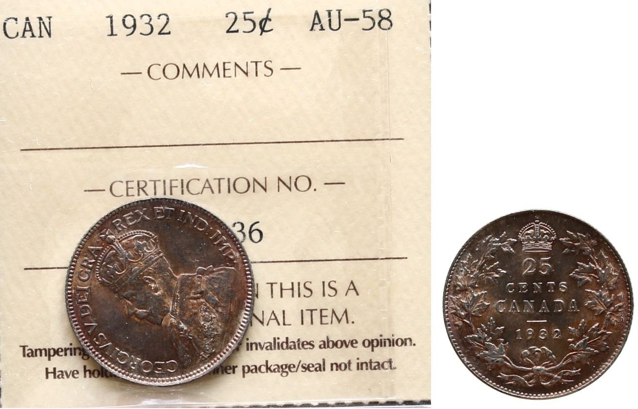 This is an Internet, Live Internet, email, phone and mail auction sale conducted. Information provided by The Canadian Numismatic Company on our web site and in this catalog is strictly AS IS and/or strictly an opinion. No warranty given. Bids are per lot. No lots will be broken. Auction sales are not approval sales. All lots shall be sold to the highest bidder as determined by the auctioneer. If any dispute arises during the sale, the auctioneer has the right to reopen the lot and put it up for sale again. The auctioneer’s decision will be final. In the case of identical (tied) bids during our Live Auctions, the earliest received bid shall take priority. In the case of a tie bid during our Sales, between a mail/fax bid and an Internet bid, the Internet bid will take precedence and obtain the lot. PLEASE CONTACT US IF YOU REQUIRE FURTHER EXPLANATION.