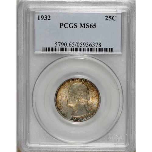 <B>1932 25C MS65 PCGS.</B></I> PCGS Population (397/132). NGC Census: (556/142). Mintage: 5,404,000. Numismedia Wsl. Price for NGC/PCGS coin in MS65: $352. (#5790)<BR><BR><b>Shipping:</b> Coins & Currency (<a target="_blank" href="http://www.heritageauctions.com/common/shipping.php">view shipping information</a>)
