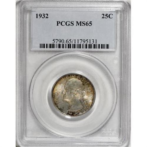 <B>1932 25C MS65 PCGS.</B></I> PCGS Population (402/132). NGC Census: (278/72). Mintage: 5,404,000. Numismedia Wsl. Price for NGC/PCGS coin in MS65: $352. (#5790)<BR><BR><B>Coin Engraver:</B> John Flanagan<BR><BR><b>Shipping:</b> Coins & Currency (<a target="_blank" href="http://www.heritageauctions.com/common/shipping.php">view shipping information</a>\)