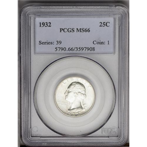 1932 25C MS66 PCGS. Boldly struck, if slightly weak on 1932[25C] MS66 PCGS.