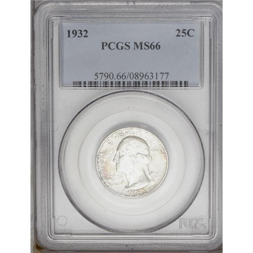 1932 25C MS66 PCGS. Splashes of apple-green, fire-red, 1932[25C] MS66 PCGS.