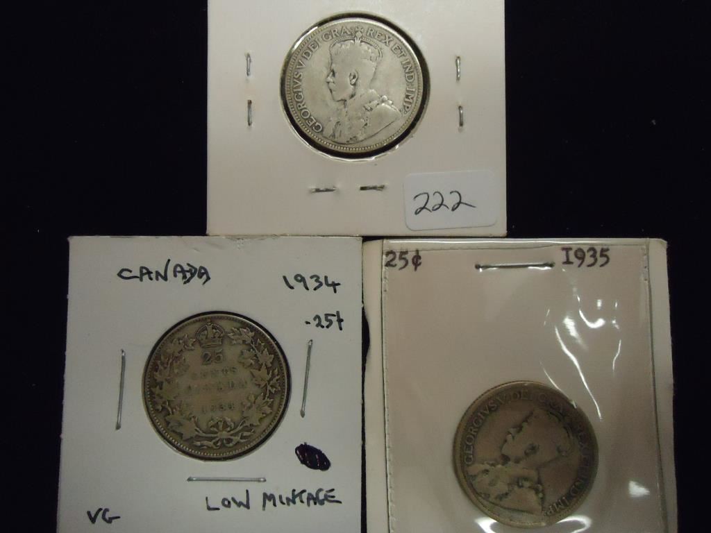 1932,34 & 35 CANADA SILVER 25 CENTS