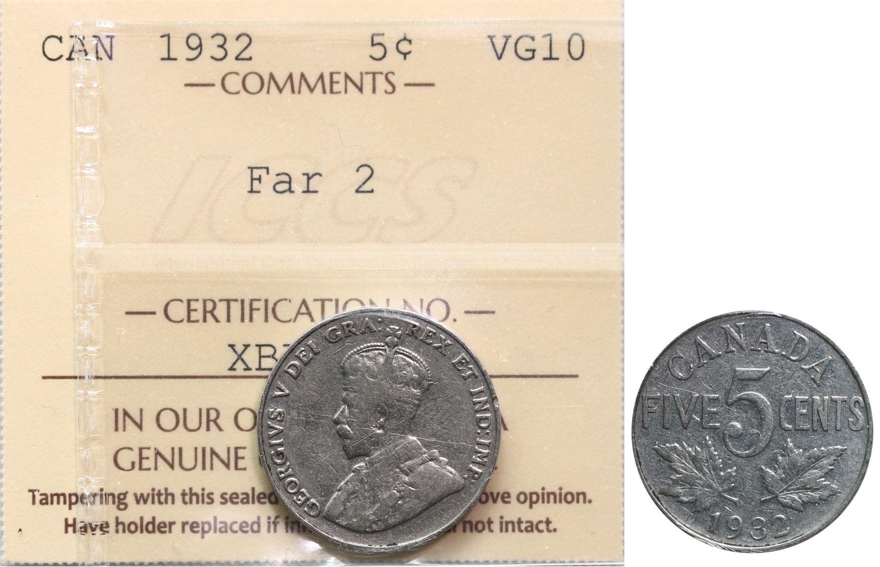 1932 5¢ "Far 2" ICCS Very Good-10. Scarce variety.