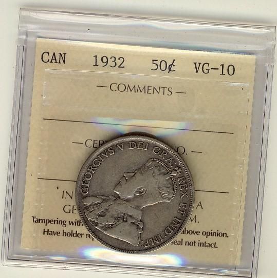 1932 50¢ ICCS VG10, a nice original silver grey example.
