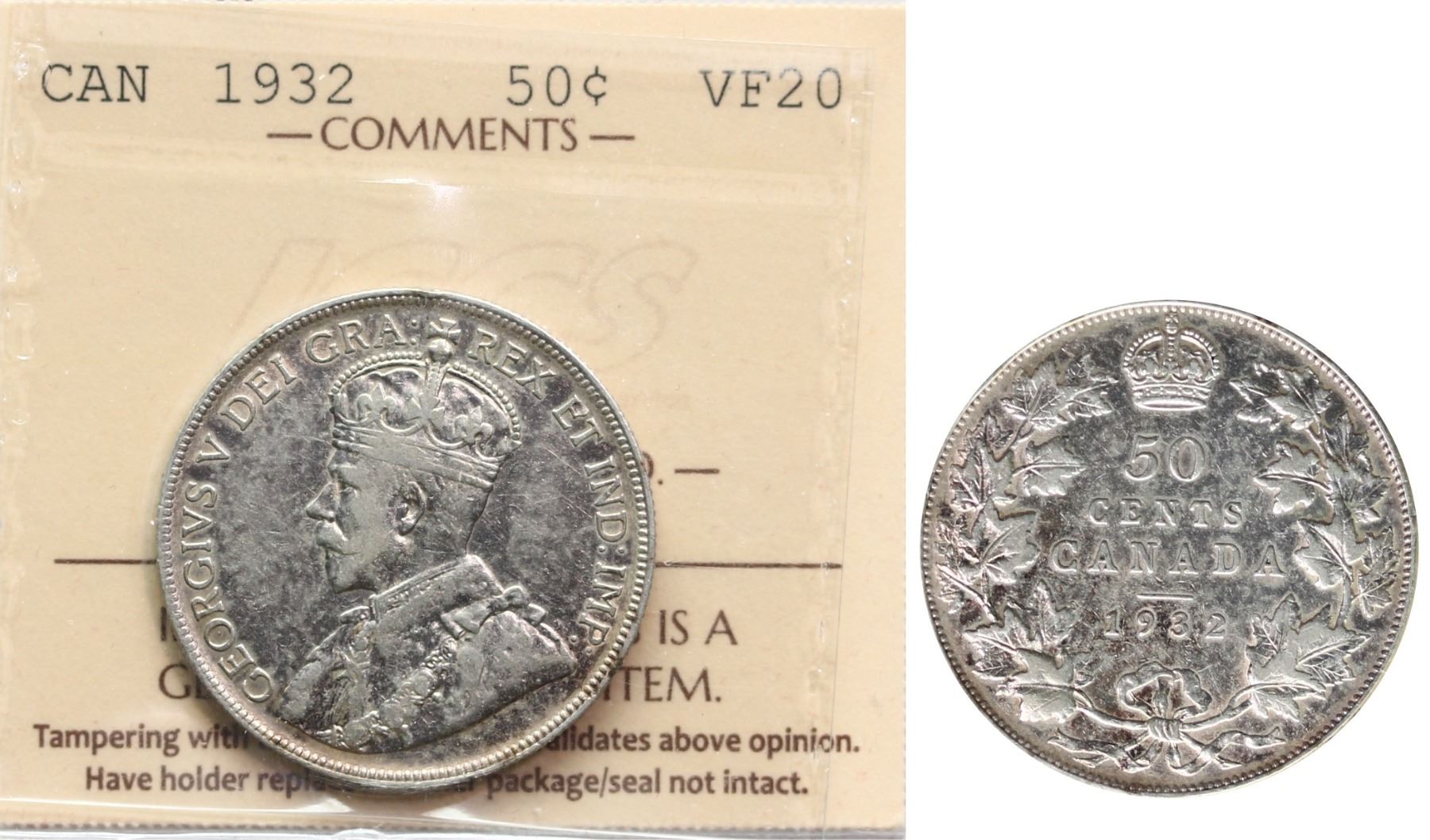 1932 50¢ ICCS Very Fine-20, Brilliant with remaining lustre. A very nice example.