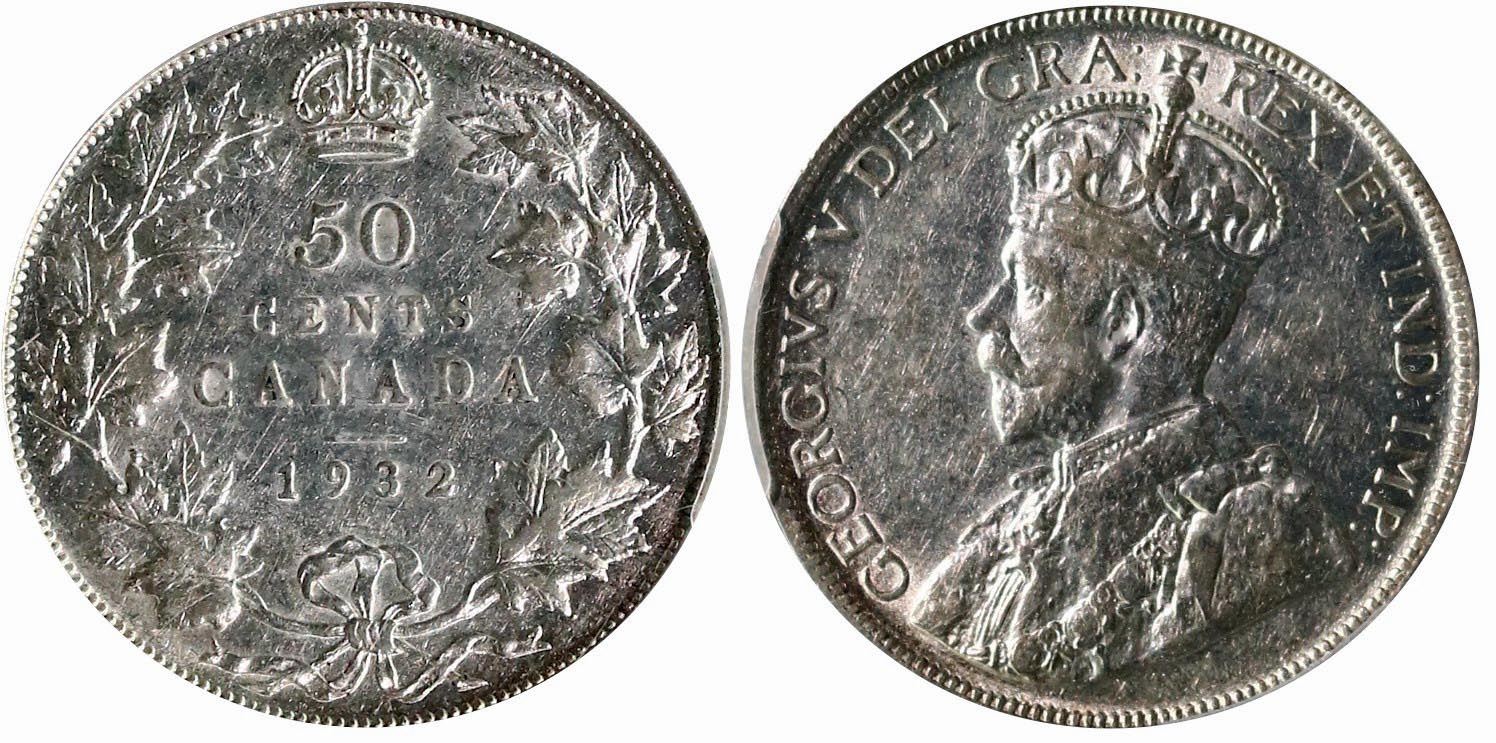1932 50¢ PCGS About Uncirculated-50. A nice bright key date example.