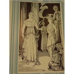1932 Arbutus Indiana University yearbook. Full of colorful illustrations of Ancient Greece. Condition: Corners slightly bumped. Light shelf wear on edges and spine. Binding is tight.