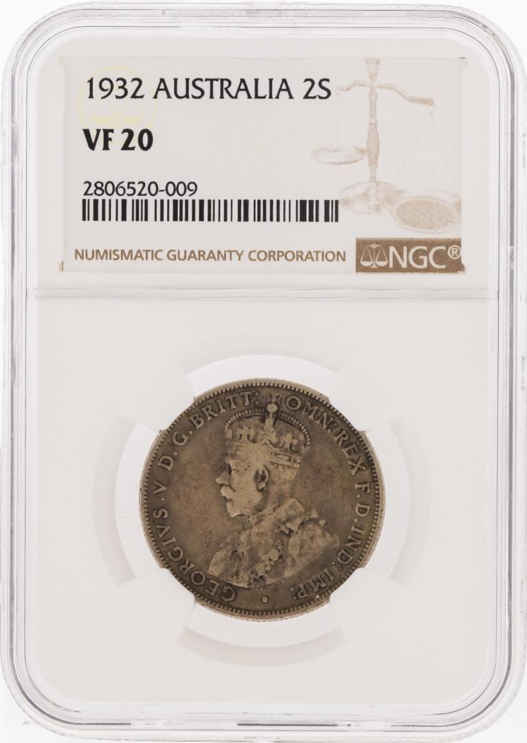 One 1932 Australia 2 Shillings Coin NGC Graded VF20. NGC Certified.