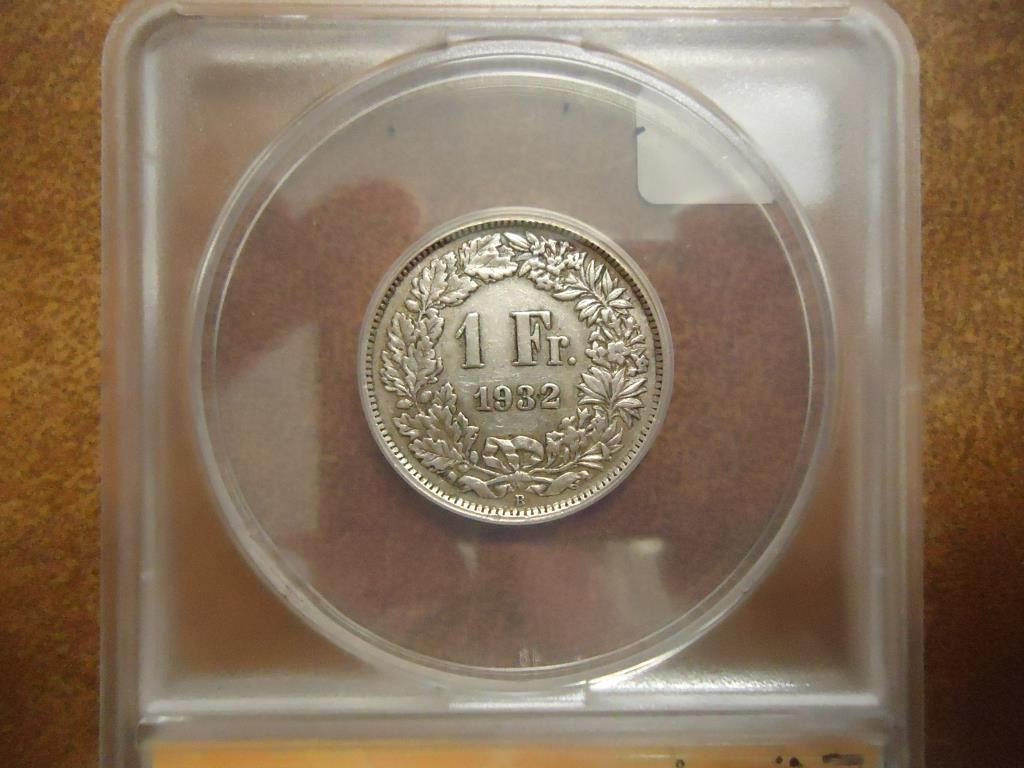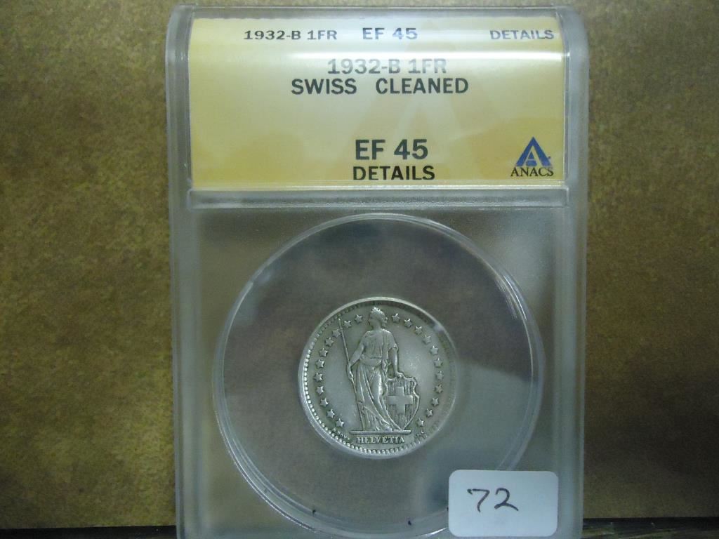 1932-B SWISS SILVER FRANC ANACS EF45 DETAILS