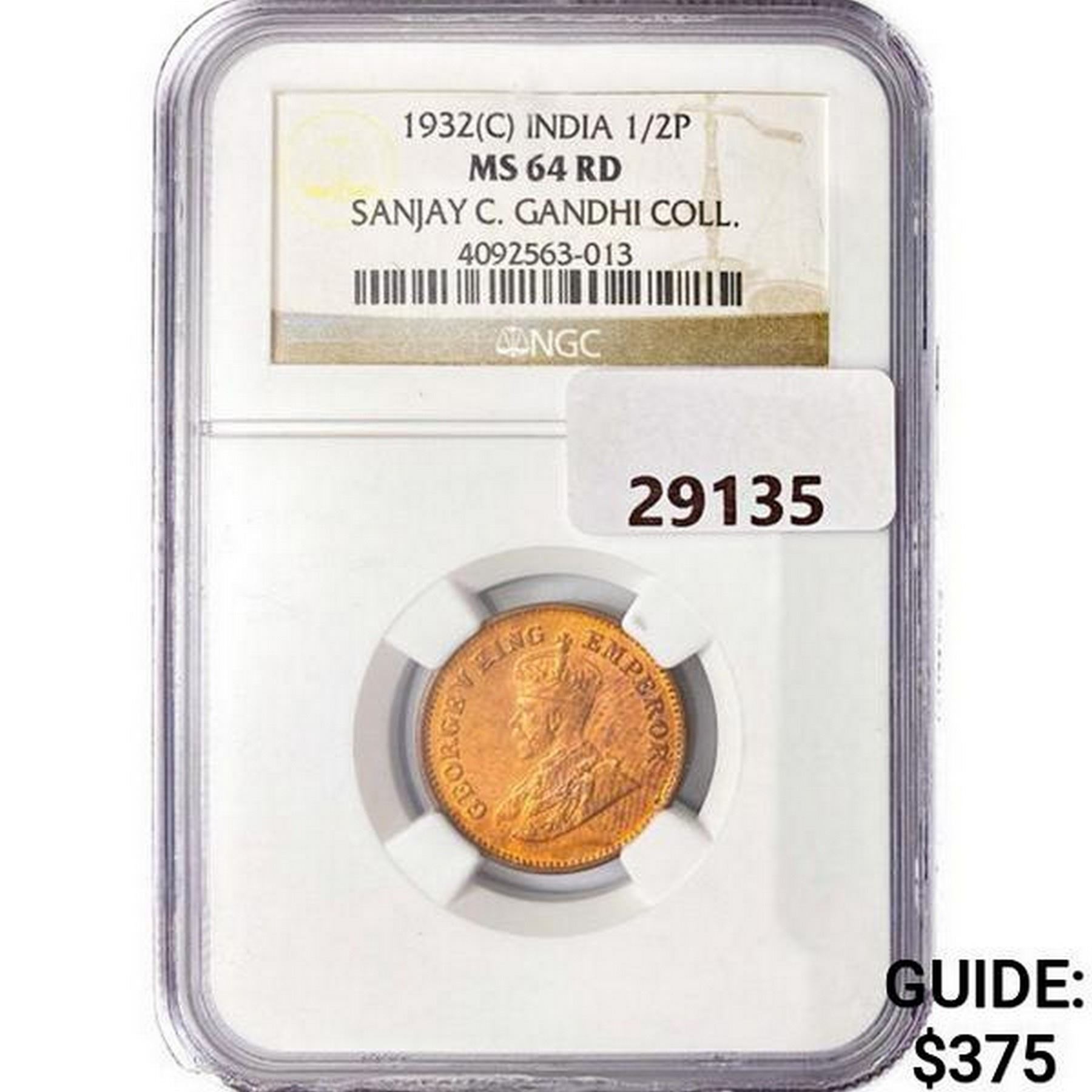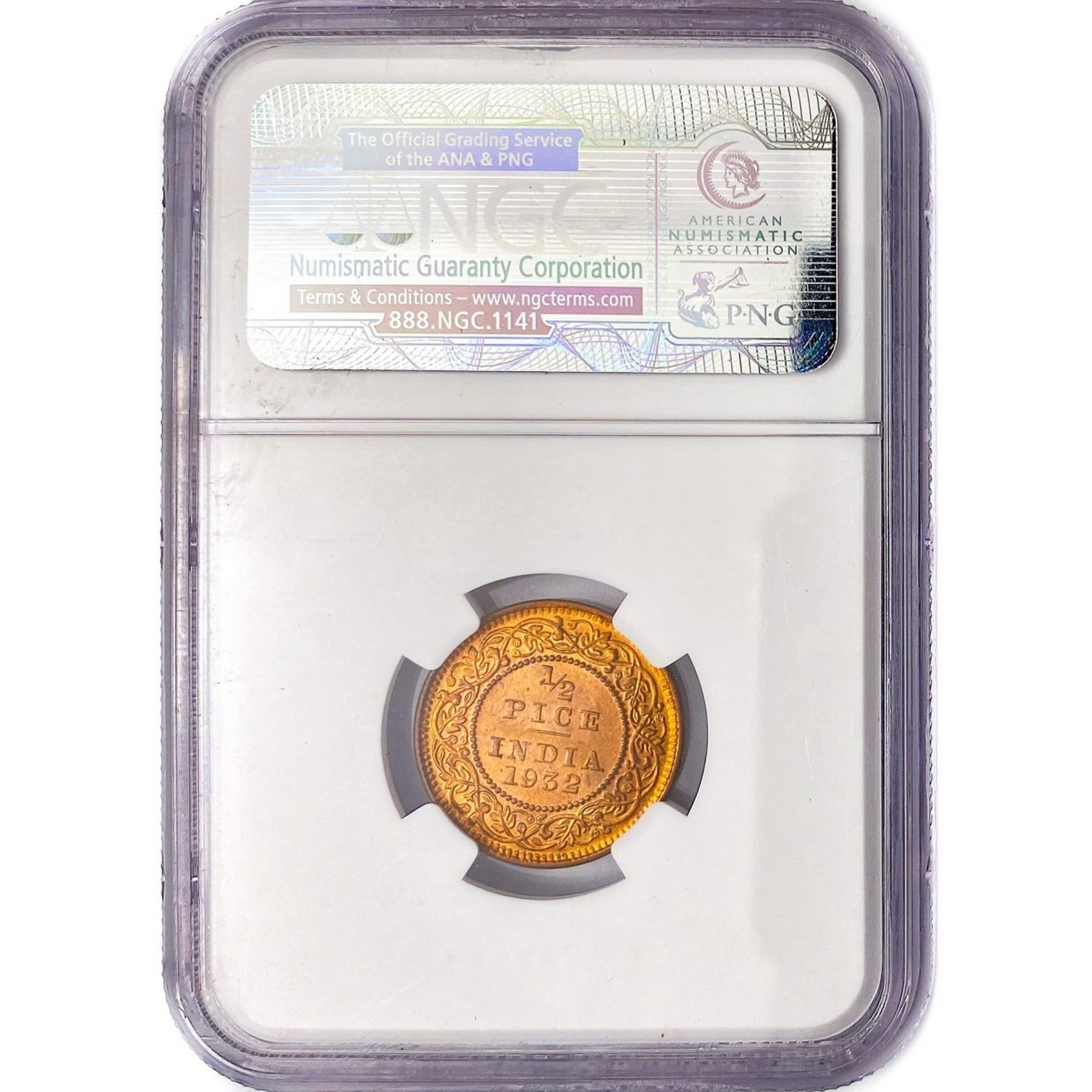 1932[C] 1/2 Pice India Bronze NGC MS64 RD