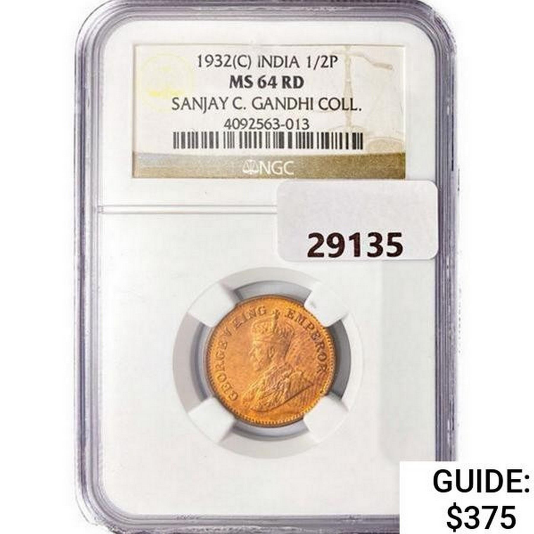 1932[C] 1/2 Pice India Bronze NGC MS64 RD