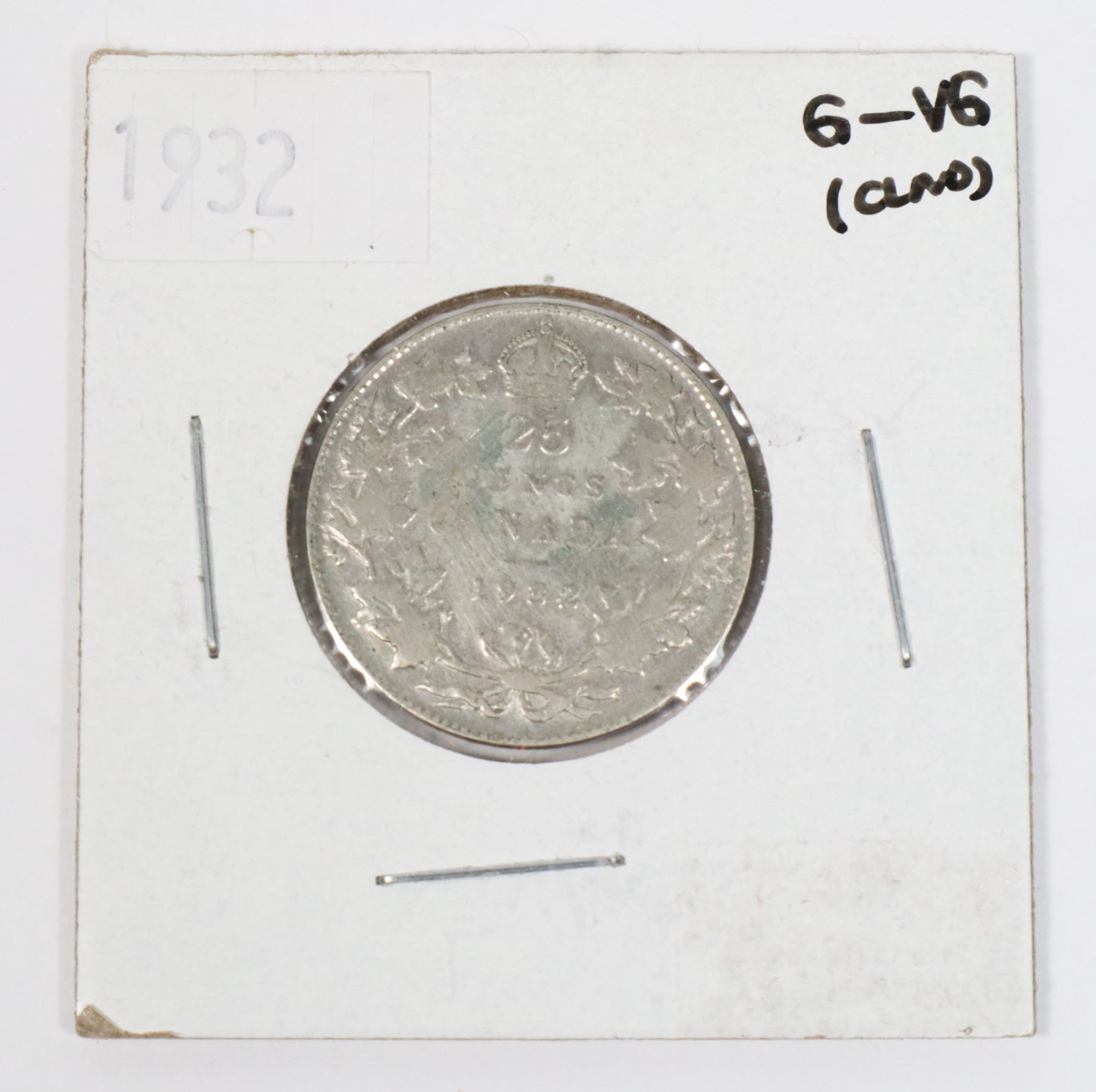 1932 CANADA SILVER 25 CENT COIN, 0.15-OZ OF