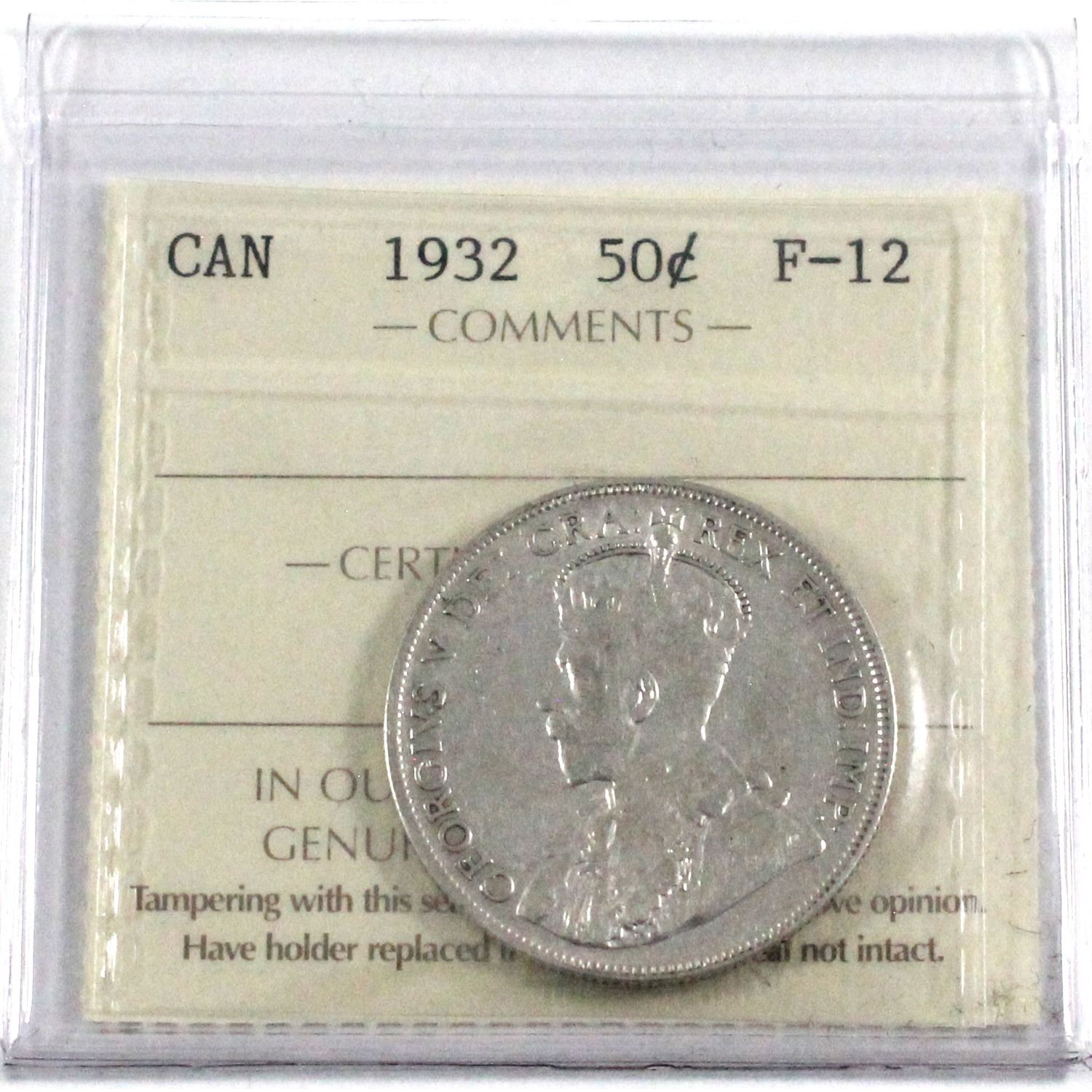 1932 Canada 50-cent ICCS Certified F-12.