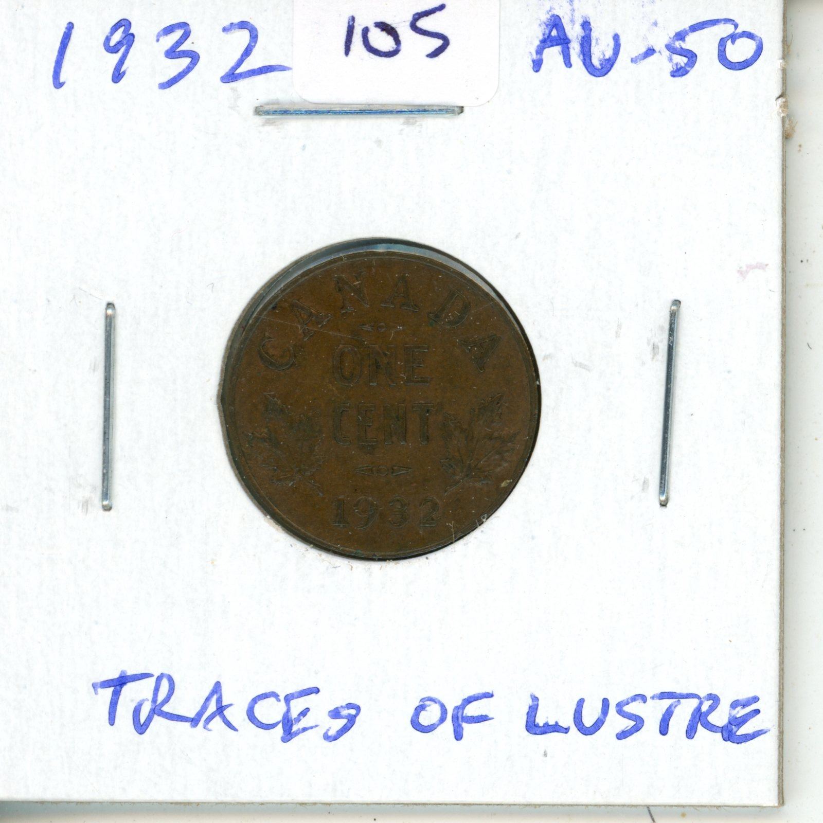 1932 Canadian Small Cent. George V. AU-50 with Traces of Lustre.