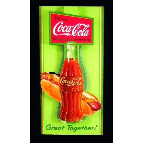 1932 Coca Cola Cardboard Three Dimensional Die Cut String Hanger Sign, The Hot Dog Sign. Framed under glass, minor scuff at 7:00 otherwise near mint condition. 10 X 20 inches.