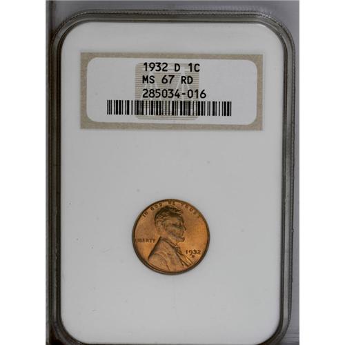 <B>1932-D<1C> MS67 Red NGC.</B></I> A well struck and lustrous Superb Gem with pleasing orange-gold color and immaculately preserved fields. The combined NGC and PCGS population is 18 pieces, with none graded higher (7/06).<BR><I>From The Tigard Oregon Small Cent Collection.</B></I>