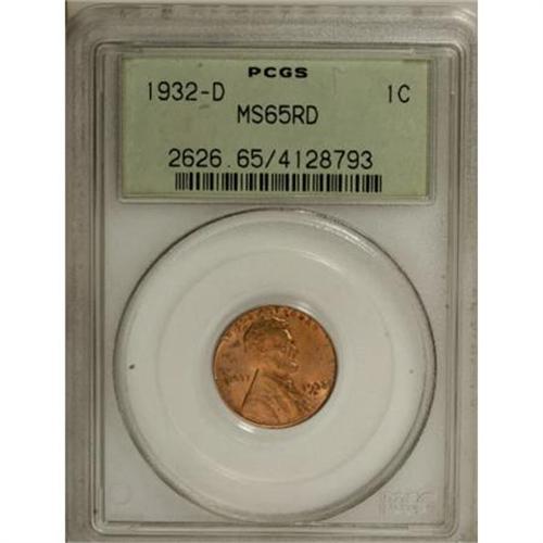 <B>1932-D 1C MS65 Red PCGS.</B></I> . PCGS Population (345/165). NGC Census: (96/66). Mintage: 10,500,000. Numismedia Wsl. Price for NGC/PCGS coin in MS65: $72. (#2626)<BR><BR><B>Coin Engraver:</B> Victor D. Brenner<BR><BR><b>Shipping:</b> Coins & Currency (<a target="_blank" href="http://www.heritageauctions.com/common/shipping.php">view shipping information</a>)