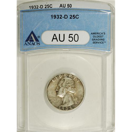1932-D 25C AU50 ANACS. NGC Census: (66/1244). PCGS
