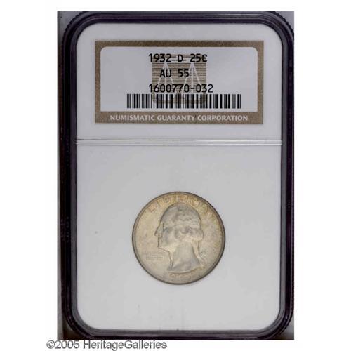 1932-D 25C AU55 NGC. This is a very pleasing lightly c 1932-D[25C] AU55 NGC.