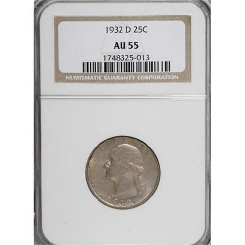 <B>1932-D 25C AU55 NGC.</B></I> NGC Census: (102/1172). PCGS Population (248/1994). Mintage: 436,800. Numismedia Wsl. Price for NGC/PCGS coin in AU55: $550. (#5791)<BR><BR><B>Coin Engraver:</B> John Flanagan<BR><BR><b>Shipping:</b> Coins & Currency (<a target="_blank" href="http://www.heritageauctions.com/common/shipping.php">view shipping information</a>)