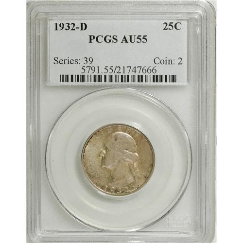 1932-D 25C AU55 PCGS. PCGS Population (224/1895).