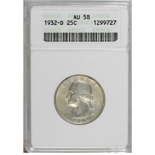 1932-D 25C AU58 ANACS. A satiny and unmarked key date