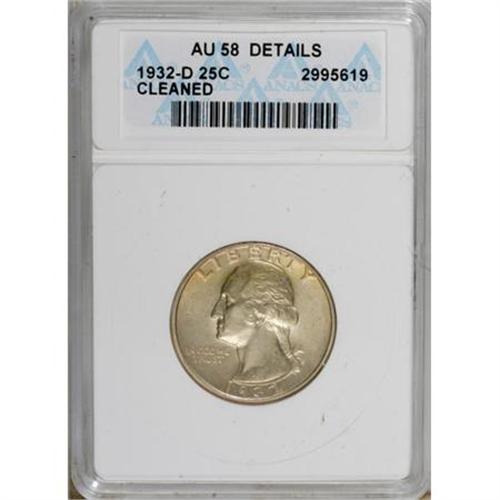 <B>1932-D 25C --Cleaned--ANACS. AU58 Details.</B></I> NGC Census: (313/790). PCGS Population (421/1482). Mintage: 436,800. Numismedia Wsl. Price for NGC/PCGS coin in AU58: $700. (#5791)<BR><BR><B>Coin Engraver:</B> John Flanagan<BR><BR><b>Shipping:</b> Coins & Currency (<a target="_blank" href="http://www.heritageauctions.com/common/shipping.php">view shipping information</a>\)