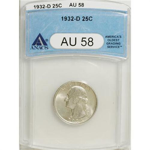 <B>1932-D 25C AU58 ANACS.</B></I> NGC Census: (313/790). PCGS Population (421/1482). Mintage: 436,800. Numismedia Wsl. Price for NGC/PCGS coin in AU58: $700. (#5791)<BR><BR><B>Coin Engraver:</B> John Flanagan<BR><BR><b>Shipping:</b> Coins & Currency (<a target="_blank" href="http://www.heritageauctions.com/common/shipping.php">view shipping information</a>\)