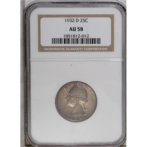 1932-D 25C AU58 NGC. A touch of highpoint friction is