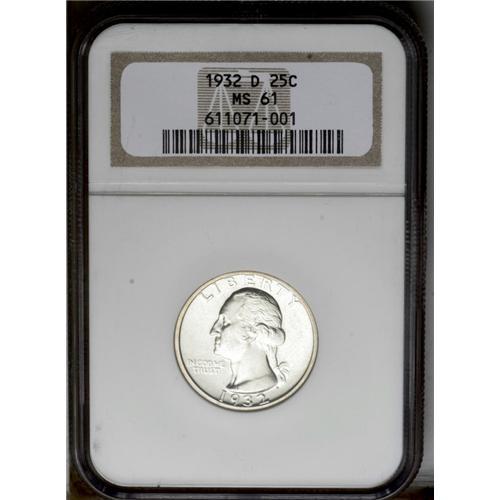 <B>1932-D<25C> MS61 NGC.</B></I> Fully brilliant and sharply struck. This is a remarkably attractive example of the date, despite a few tiny indentations in the obverse surface.