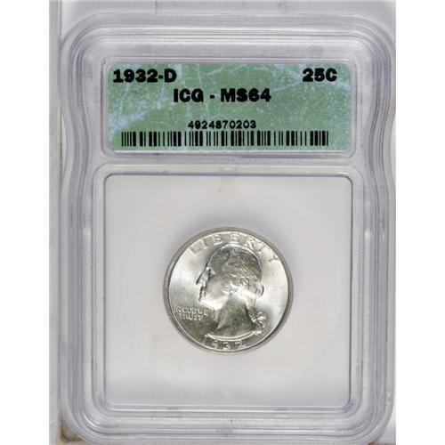 1932-D 25C MS64 ICG. As one of only 436,800 quarters p