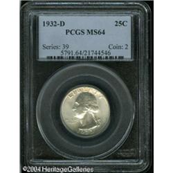 1932-D 25C MS64 PCGS. A lustrous, high grade examp 1932-D 25C MS64 PCGS.