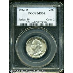 <table><tbody><tr><td><table> <TR><TD width="100%"><TABLE cellSpacing=1 cellPadding=3 width="100%" border=0><TBODY><TR><TD width="100%" bgColor=#79735c><FONT face=arial color=#ffffff size=3><B>Description</B> </FONT></TD></TR><TR><TD width="100%" bgColor=#ffffff><FONT face=arial size=2><B>1932-D 25C MS64 PCGS.</B></I> This elusive, key issue had only 436,800 pieces produced, and very few were set aside at the time of issue, making this a condition rarity as well as an absolute rarity. This is an original coin that has pleasing satiny luster and an occasional dusting of golden-olive toning around the margins. </FONT></TD></TR></TBODY></TABLE></TD></TR></TBODY></TABLE><BR><A name=PricesRealized></A><TABLE cellSpacing=0 cellPadding=0 width="100%" bgColor=#000000 border=0><TBODY><TR><TD width="100%"><TABLE cellSpacing=1 cellPadding=3 width="100%" border=0><TBODY><TR><TD width="100%" bgColor=#79735c><A name=PR><FONT face=arial color=#ffffff size=3><B>Previous Prices from Heritage Auctions</B> </FONT></A></TD></TR><TR><TD bgColor=#f6f6ed><TABLE cellSpacing=0 cellPadding=0 width="100%" border=1><TBODY><TR><TD align=middle width="33%"><B>Date</B></TD><TD align=middle width="33%"><B>Service</B></TD><TD align=middle width="33%"><B>Price</B></TD></TR><TR bgColor=whitesmoke><TD width="33%"><B>10/28/2003</B></TD><TD width="33%">PCGS</TD><TD width="33%">$4,600.00</TD></TR><TR bgColor=whitesmoke><TD width="33%"><B>03/18/2003</B></TD><TD width="33%">PCGS</TD><TD width="33%">$4,600.00</TD></TR><TR bgColor=whitesmoke><TD width="33%"><B>01/07/2004</B></TD><TD width="33%">PCGS</TD><TD width="33%">$8,625.00</TD></TR><TR bgColor=whitesmoke><TD width="33%"><B>01/07/2004</B></TD><TD width="33%">PCGS</TD><TD width="33%">$5,060.00</TD></TR><TR bgColor=whitesmoke><TD width="33%"><B>01/07/2004</B></TD><TD width="33%">PCGS</TD><TD width="33%">$6,037.50</TD></TR><TR bgColor=whitesmoke><TD width="33%"><B>11/07/2003</B></TD><TD width="33%">PCGS</TD><TD width="33%">$7,187.50</TD></TR><TR bgColor=whitesmoke><TD width="33%"><B>05/03/2003</B></TD><TD width="33%">PCGS</TD><TD width="33%">$4,600.00</TD></TR><TR bgColor=whitesmoke><TD width="33%"><B>01/11/2003</B></TD><TD width="33%">NGC</TD><TD width="33%">$2,760.00</TD></TR><TR bgColor=whitesmoke><TD width="33%"><B>09/28/2002</B></TD><TD width="33%">PCGS</TD><TD width="33%">$3,501.75</TD></TR><TR bgColor=whitesmoke><TD width="33%"><B>07/30/2002</B></TD><TD width="33%">NGC</TD><TD width="33%">$5,175.00</TD></TR><TR bgColor=whitesmoke><TD width="33%"><B>07/30/2002</B></TD><TD width="33%">PCGS</TD><TD width="33%">$5,462.50</TD></TR><TR bgColor=whitesmoke><TD width="33%"><B>06/08/2002</B></TD><TD width="33%">PCGS</TD><TD width="33%">$3,680.00</TD></TR><TR bgColor=whitesmoke><TD width="33%"><B>02/23/2002</B></TD><TD width="33%">PCGS</TD><TD width="33%">$2,760.00</TD></TR><TR bgColor=whitesmoke><TD width="33%"><B>01/12/2002</B></TD><TD width="33%">PCGS</TD><TD width="33%">$3,105.00</TD></TR><TR bgColor=whitesmoke><TD width="33%"><B>04/05/2001</B></TD><TD width="33%">PCGS</TD><TD width="33%">$3,220.00</TD></TR><TR bgColor=whitesmoke><TD width="33%"><B>05/05/2000</B></TD><TD width="33%">PCGS</TD><TD width="33%">$1,610.00</TD></TR><TR bgColor=whitesmoke><TD width="33%"><B>11/19/1999</B></TD><TD width="33%">NGC</TD><TD width="33%">$3,220.00</TD></TR><TR bgColor=whitesmoke><TD width="33%"><B>06/03/1998</B></TD><TD width="33%">PCGS</TD><TD width="33%">$962.50</TD></TR><TR bgColor=whitesmoke><TD width="33%"><B>05/02/1997</B></TD><TD width="33%">NGC</TD><TD width="33%">$632.50</TD></TR><TR bgColor=whitesmoke><TD width="33%"><B>01/11/1997</B></TD><TD width="33%">NGC</TD><TD width="33%">$948.75</TD></TR><TR bgColor=whitesmoke><TD width="33%"><B>06/01/1996</B></TD><TD width="33%">NGC</TD><TD width="33%">$770.00</TD></TR><TR bgColor=whitesmoke><TD width="33%"><B>05/19/1995</B></TD><TD width="33%">NGC</TD><TD width="33%">$742.50</TD></TR><TR bgColor=whitesmoke><TD width="33%"><B>04/02/1993</B></TD><TD width="33%">PCGS</TD><TD width="33%">$990.00</TD></TR><TR bgColor=whitesmoke><TD width="33%"><B>03/01/1997</B></TD><TD width="33%">NGC</TD><TD width="33%">$1,100.00</TD></TR><TR bgColor=whitesmoke><TD width="33%"><B>02/01/1999</B></TD><TD width="33%">PCGS</TD><TD width="33%">$1,495.00</TD></TR><TR bgColor=whitesmoke><TD width="33%"><B>02/01/1997</B></TD><TD width="33%">PCGS</TD><TD width="33%">$880.00</TD></TR><TR bgColor=whitesmoke><TD width="33%"><B>11/01/1999</B></TD><TD width="33%">PCGS</TD><TD width="33%">$1,380.00</TD></TR><TR bgColor=whitesmoke><TD width="33%"><B>08/09/2000</B></TD><TD width="33%">NGC</TD><TD width="33%">$1,495.00</TD></TR><TR bgColor=whitesmoke><TD width="33%"><B>11/01/2001</B></TD><TD width="33%">PCGS</TD><TD width="33%">$2,875.00</TD></TR><TR bgColor=whitesmoke><TD width="33%"><B>02/18/2002</B></TD><TD width="33%">PCGS</TD><TD width="33%">$2,760.00</TD></TR></TBODY></TABLE></TD></TR><TR><TD bgColor=#ffffff><FONT face=arial size=1 ?>PLEASE NOTE: All prices realized reflect the final hammer price PLUS the buyer's premium in auctions that charge a buyer's premium. Each item has a notation at the top of the listing indicating whether that lot included a buyer's premium. Example: A item that sells with a final hammer price of $100 and a 20% buyer's premium will display with a price realized of $120. All information listed is intended to be as accurate as possible, but errors are possible. Please use this guide carefully and inform us of any inaccuracies. </FONT></TD></TR></TBODY></TABLE></TD></TR></TBODY></TABLE><BR><TABLE cellSpacing=0 cellPadding=0 width="100%" bgColor=#000000 border=0><TBODY><TR><TD width="100%"><TABLE cellSpacing=1 cellPadding=3 width="100%" border=0><TBODY><TR><TD width="100%" bgColor=#79735c colSpan=6><FONT face=arial color=#ffffff size=3><B>Price Guide*</B> </FONT></TD></TR><TR bgColor=#f6f6ed><TD align=middle><B>Grade</B> </TD><TD align=middle><B>Coin World<BR>(Trends)</B> </TD><TD align=middle><B>Numismedia<BR>Retail</B> </TD><TD align=middle><B>Nu