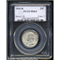 <B>1932-D<25C> MS64 PCGS.</B></I> Dappled cream-gray, apricot, and russet colors grace this satiny key date Quarter. The fields are refreshingly devoid of contact, and only intense inspection locates a pair of tiny and well concealed marks, one of which is on the upper jaw and the other is noted on the left side of the eagle's breast. The continuing Statehood Quarter series continues to bring collectors to the earlier Washington type, and the demand for quality Mint State examples of the key 1932-D is much greater than the meager supply. <BR><BR><B>Important notice:</B> Heritage usually auctions material at the rate of 200-250 lots per hour. On some occasions eBay Live bid software or the Internet may not be able to keep up with the pace of the auction. We recommend placing a realistic absentee bid now as insurance to avoid disappointment. Occasionally the auctioneer may eliminate or reject an eBay Live bid, and the auctioneer may also reopen a lot after the close of the eBay live bidding (usually because we missed an audience bid), and may reject your bid even if it shows you as the winning bidder. By bidding via eBay Live, you agree that Heritage may award the lot to another bidder at its sole discretion under the circumstances described above or any other reasonable circumstances. Since eBay bids are not shown to us until we open the lot on the floor, we treat those bids just like floor bids. In most cases the floor responds before the eBay bid is presented to us, due to Internet lag time, so for consistency we have made it a policy that floor bids are always considered first over tie eBay live bids. Also please note that all Heritage lots purchased through eBay Live carry a 20% Buyer's Premium. Please make sure you read the Terms and Conditions before you bid. </span></font></tr></table></td></tr></table>