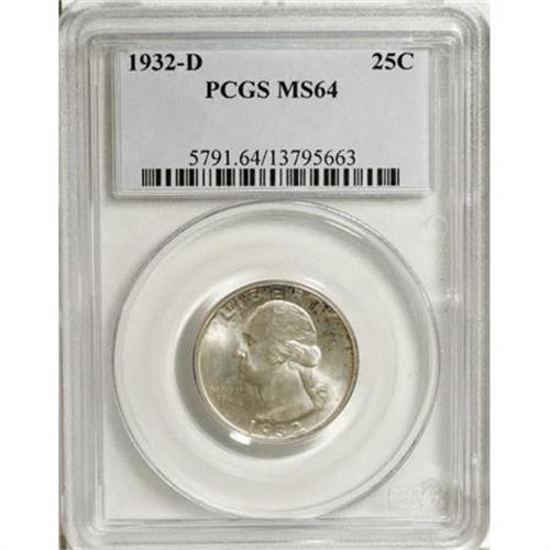 <B>1932-D 25C MS64 PCGS.</B></I> The Denver mint 1932 quarters are significantly scarcer to locate than their San Francisco counterparts, in spite of similar mintages. According to Breen, this is because fewer rolls were set aside of the D-mint quarters. This is an exceptionally attractive example that shows luxuriant, satin-like mint luster. Nearly brilliant over most of each side with deeper flecks of russet toning around the margin on the obverse.<BR><BR><B>Coin Engraver:</B> John Flanagan<BR><BR><b>Shipping:</b> Coins & Currency (<a target="_blank" href="http://www.heritageauctions.com/common/shipping.php">view shipping information</a>)