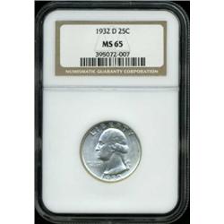<table><tr><td><TABLE cellSpacing=0 cellPadding=0 width="100%" bgColor=#000000 border=0><TBODY> <TR><TD width="100%"><TABLE cellSpacing=1 cellPadding=3 width="100%" border=0><TBODY><TR><TD width="100%" bgColor=#79735c><FONT face=arial color=#ffffff size=3><B>Description</B> </FONT></TD></TR><TR><TD width="100%" bgColor=#ffffff><FONT face=arial size=2><B>1932-D 25C MS65 NGC.</B></I> A thoroughly brilliant example of this important key issue in the Washington quarter series. The surfaces are virtually devoid of even the tiniest abrasions and soft, satiny luster covers each side. In a sale with two other Gems, this piece may be viewed by many as "first among equals." </FONT></TD></TR></TBODY></TABLE></TD></TR></TBODY></TABLE><BR><A name=PricesRealized></A><TABLE cellSpacing=0 cellPadding=0 width="100%" bgColor=#000000 border=0><TBODY><TR><TD width="100%"><TABLE cellSpacing=1 cellPadding=3 width="100%" border=0><TBODY><TR><TD width="100%" bgColor=#79735c><A name=PR><FONT face=arial color=#ffffff size=3><B>Previous Prices from Heritage Auctions</B> </FONT></A></TD></TR><TR><TD bgColor=#f6f6ed><TABLE cellSpacing=0 cellPadding=0 width="100%" border=1><TBODY><TR><TD align=middle width="33%"><B>Date</B></TD><TD align=middle width="33%"><B>Service</B></TD><TD align=middle width="33%"><B>Price</B></TD></TR><TR bgColor=whitesmoke><TD width="33%"><B>03/23/2003</B></TD><TD width="33%">PCGS</TD><TD width="33%">$20,700.00</TD></TR><TR bgColor=whitesmoke><TD width="33%"><B>03/23/2003</B></TD><TD width="33%">PCGS</TD><TD width="33%">$20,700.00</TD></TR><TR bgColor=whitesmoke><TD width="33%"><B>01/11/2003</B></TD><TD width="33%">PCGS</TD><TD width="33%">$16,100.00</TD></TR><TR bgColor=whitesmoke><TD width="33%"><B>07/30/2002</B></TD><TD width="33%">PCGS</TD><TD width="33%">$17,250.00</TD></TR><TR bgColor=whitesmoke><TD width="33%"><B>07/30/2002</B></TD><TD width="33%">PCGS</TD><TD width="33%">$17,250.00</TD></TR><TR bgColor=whitesmoke><TD width="33%"><B>02/23/2002</B></TD><TD width="33%">PCGS</TD><TD width="33%">$14,950.00</TD></TR><TR bgColor=whitesmoke><TD width="33%"><B>08/08/2001</B></TD><TD width="33%">PCGS</TD><TD width="33%">$11,500.00</TD></TR><TR bgColor=whitesmoke><TD width="33%"><B>08/08/2001</B></TD><TD width="33%">PCGS</TD><TD width="33%">$11,500.00</TD></TR><TR bgColor=whitesmoke><TD width="33%"><B>06/06/1997</B></TD><TD width="33%">PCGS</TD><TD width="33%">$4,140.00</TD></TR><TR bgColor=whitesmoke><TD width="33%"><B>01/11/1997</B></TD><TD width="33%">PCGS</TD><TD width="33%">$3,565.00</TD></TR><TR bgColor=whitesmoke><TD width="33%"><B>01/11/1997</B></TD><TD width="33%">PCGS</TD><TD width="33%">$3,565.00</TD></TR><TR bgColor=whitesmoke><TD width="33%"><B>09/21/1996</B></TD><TD width="33%">NGC</TD><TD width="33%">$3,025.00</TD></TR><TR bgColor=whitesmoke><TD width="33%"><B>02/06/1995</B></TD><TD width="33%">PCGS</TD><TD width="33%">$4,180.00</TD></TR><TR bgColor=whitesmoke><TD width="33%"><B>02/06/1995</B></TD><TD width="33%">PCGS</TD><TD width="33%">$4,180.00</TD></TR></TBODY></TABLE></TD></TR><TR><TD bgColor=#ffffff><FONT face=arial size=1 ?>PLEASE NOTE: All prices realized reflect the final hammer price PLUS the buyer's premium in auctions that charge a buyer's premium. Each item has a notation at the top of the listing indicating whether that lot included a buyer's premium. Example: A item that sells with a final hammer price of $100 and a 20% buyer's premium will display with a price realized of $120. All information listed is intended to be as accurate as possible, but errors are possible. Please use this guide carefully and inform us of any inaccuracies. </FONT></TD></TR></TBODY></TABLE></TD></TR></TBODY></TABLE><BR><TABLE cellSpacing=0 cellPadding=0 width="100%" bgColor=#000000 border=0><TBODY><TR><TD width="100%"><TABLE cellSpacing=1 cellPadding=3 width="100%" border=0><TBODY><TR><TD width="100%" bgColor=#79735c colSpan=6><FONT face=arial color=#ffffff size=3><B>Price Guide*</B> </FONT></TD></TR><TR bgColor=#f6f6ed><TD align=middle><B>Grade</B> </TD><TD align=middle><B>Coin World<BR>(Trends)</B> </TD><TD align=middle><B>Numismedia<BR>Retail</B> </TD><TD align=middle><B>Numismedia<BR>Wholesale</B> </TD><TD align=middle><B>Coin<BR>Universe</B> </TD><TD align=middle><B>Heritage<BR>Value Index</B> </TD></TR><TR bgColor=#ffffff><TD align=middle>64</TD><TD align=right>---</TD><TD align=right>---</TD><TD align=right>$3,975.00</TD><TD align=right>$6,300.00</TD><TD align=right>$4,048.00</TD></TR><TR style="FONT-WEIGHT: bold" bgColor=#cccfdd><TD align=middle>65</TD><TD align=right>---</TD><TD align=right>---</TD><TD align=right>$10,600.00</TD><TD align=right>$30,000.00</TD><TD align=right>$16,566.67</TD></TR><TR bgColor=#ffffff><TD align=middle>66</TD><TD align=right>---</TD><TD align=right>---</TD><TD align=right>$72,500.00</TD><TD align=right>$85,000.00</TD><TD align=right>$59,500.00</TD></TR><TR bgColor=#ffffff><TD colSpan=6><FONT size=1>*All information listed is intended to be as accurate as possible, but errors are possible. No item may be returned or refused based on this information which is provided as a service to our customers. You should contact each pricing source directly to determine the accuracy of this information. </FONT></TD></TR></TBODY></TABLE></TD></TR></TBODY></TABLE><BR><TABLE cellSpacing=0 cellPadding=0 width="100%" bgColor=#000000 border=0><TBODY><TR><TD width="100%"><TABLE cellSpacing=1 cellPadding=3 width="100%" border=0><TBODY><TR><TD width="100%" bgColor=#79735c><FONT face=arial color=#ffffff size=3><B>Population Guide</B> </FONT></TD></TR><TR bgColor=#ffffff><TD align=middle><!-- Begin Output of Population Grid--><TABLE cellSpacing=0 cellPadding=0 width="100%" border=0><TBODY><TR><TD vAlign=center><TABLE cellSpacing=0 width="100%" border=1 cellsadding="3"><TBODY><TR><TD vAlign=center><TABLE cellSpacing=0 cellPadding=3 width="100%" border=1><TBODY><TR><TD vAlign=center align=middle bgColor=#f0f1e8 colSpan=2 <CENTER><FONT face=Arial size=2><B>PCGS Pop </B></FONT><CE