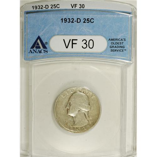 1932-D 25C VF30 ANACS. NGC Census: (25/1460). PCGS