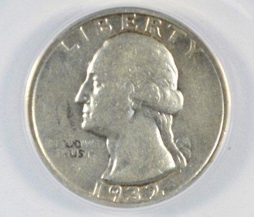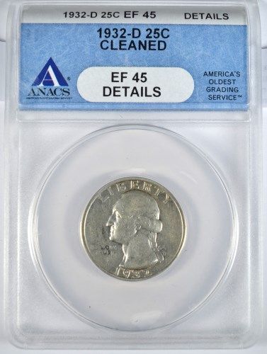 1932-D WASHINGTON QUARTER ANACS XF-AU 45, MINOR CLEANING