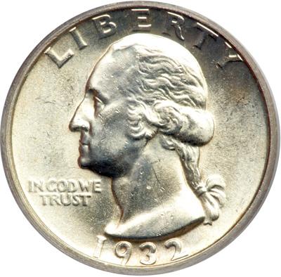 1932-D Washington Quarter Dollar. PCGS graded MS-63. 436,800 minted of which only 44,000 pieces are estimated to have survived. Delicate golden toning. A popular key date in this choice condition (PCGS # 5791) .