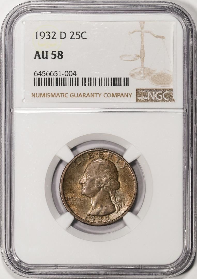 One 1932-D Washington Quarter Coin NGC AU58. NGC Certified.
