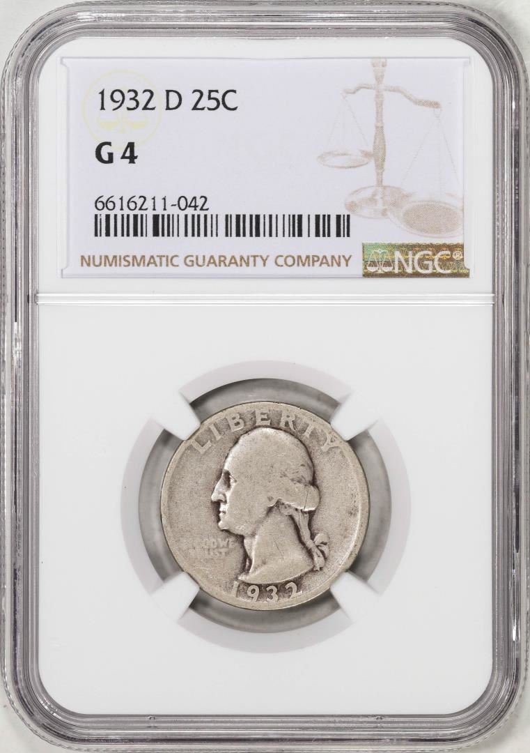 One 1932-D Washington Quarter Coin NGC G4. NGC Certified.