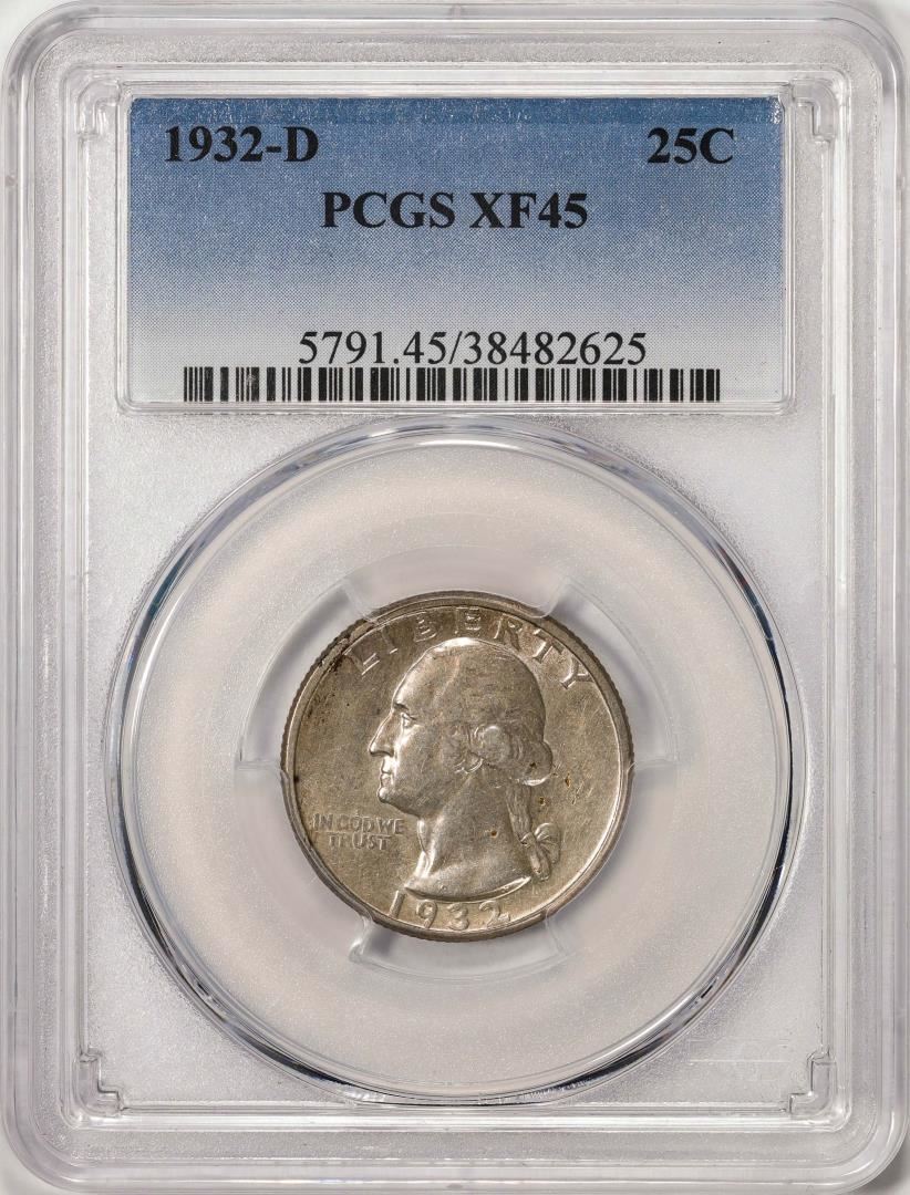 One 1932-D Washington Quarter Coin PCGS XF45. PCGS Graded.