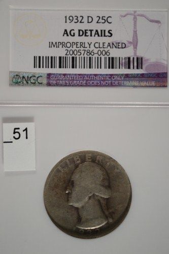 1932-D Washington Quarter NGC AG, Minor Cleaning