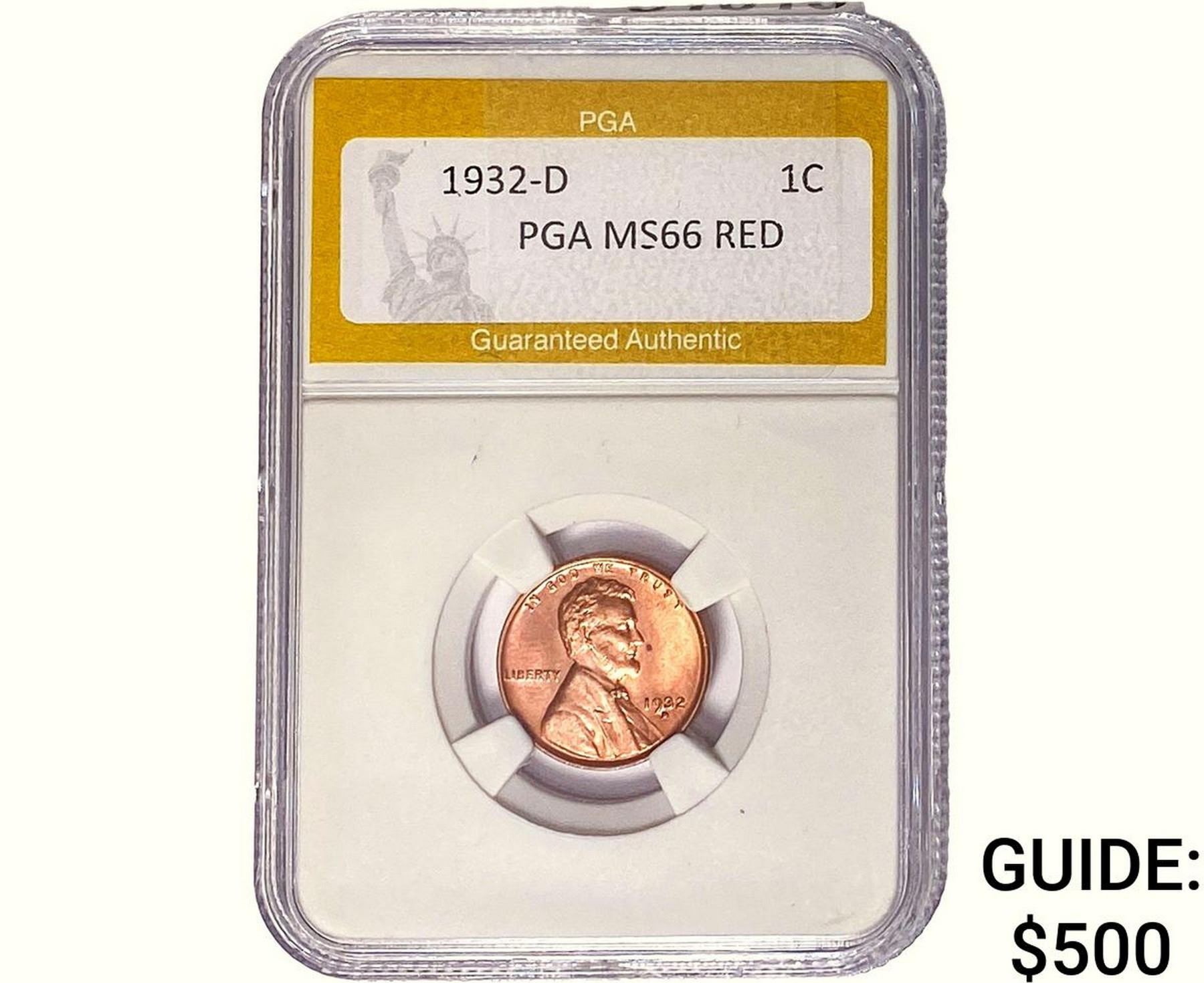 1932-D Wheat Cent PGA MS66 RED